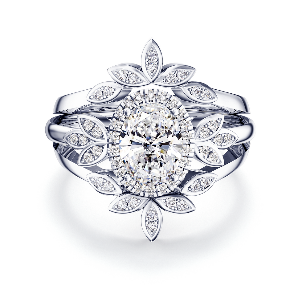 Geometric Bands: Combines the oval diamond with angular or artistic band designs for a modern and personalised appearance.
